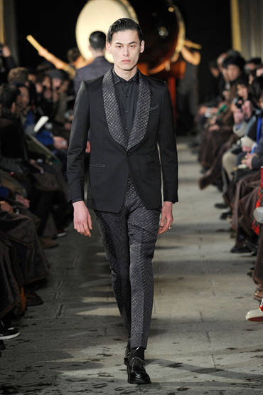 デザイナー、ミハラヤスヒロの2013年秋冬コレクションは、パレ・ロワイヤルのアーケードの下で、日本の伝統的な和太鼓の音に合わせて発表されました。